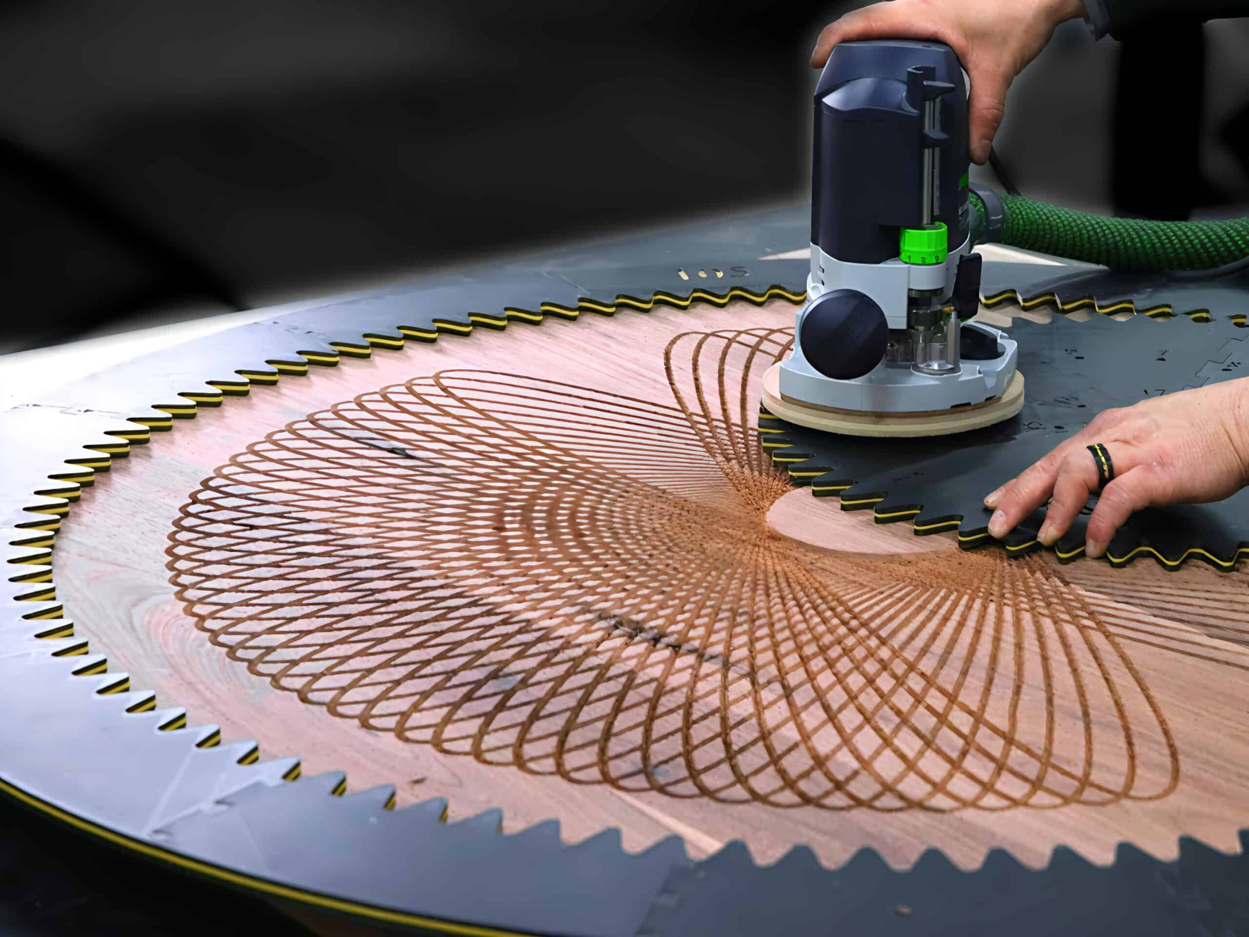 - The Goal: To spin the router around the table 52 times perfectly to carve a deep, hypnotic pattern.