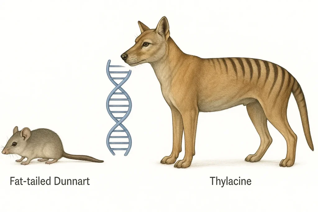 • The Edit: They take the DNA of the living Dunnart and use CRISPR technology to “edit” it, swapping out specific genes to match the Thylacine’s code.